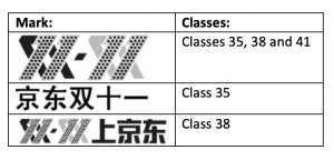 From November 2013 JD.com applied for trademarks related to ‘Double 11’ to promote its own shopping event, including: