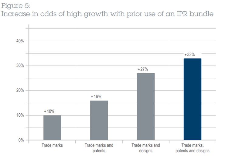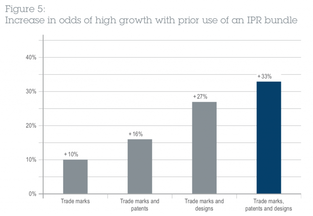 - SMEs that use bundles of trade marks, patents and designs instead of a single category of IPR are even more likely to achieve high growth.