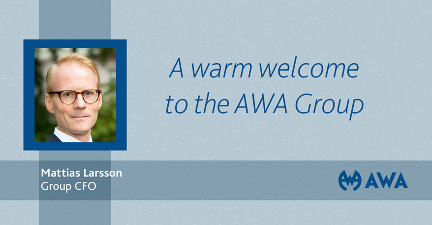 We are pleased to announce that Mattias Larsson joined the AWA Group today as Group CFO. Mattias will report to Group CEO Thor Mosaker and becomes a member of the AWA Management Team.