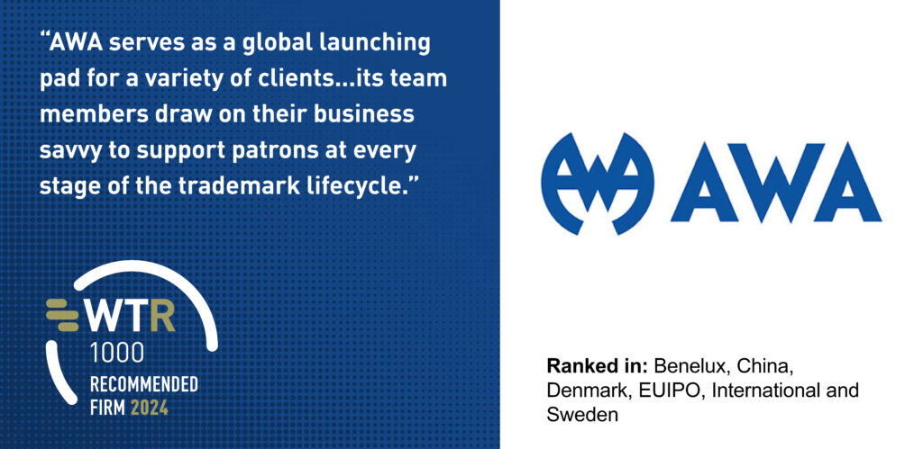 The WTR 1000 2024 ranked AWA’s trademark practice in six regions across Europe and Asia and ten trademark attorneys spanning both prosecution and strategy and litigation and enforcement categories.