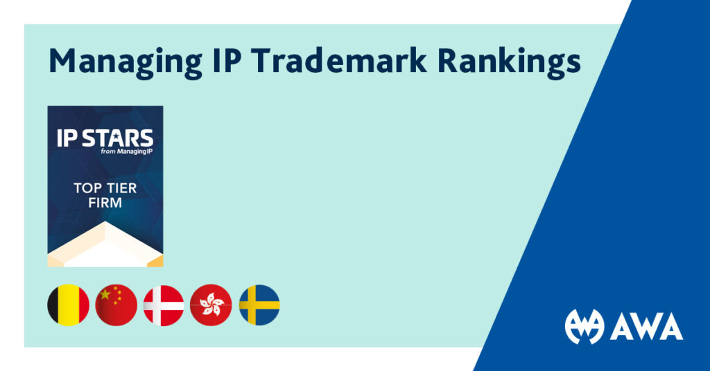 AWA’s offices in Belgium, Denmark, and Sweden have received a top-tier ranking in the trademark prosecution category and recommended firm rankings in the Benelux regional listing and China and Hong Kong.
